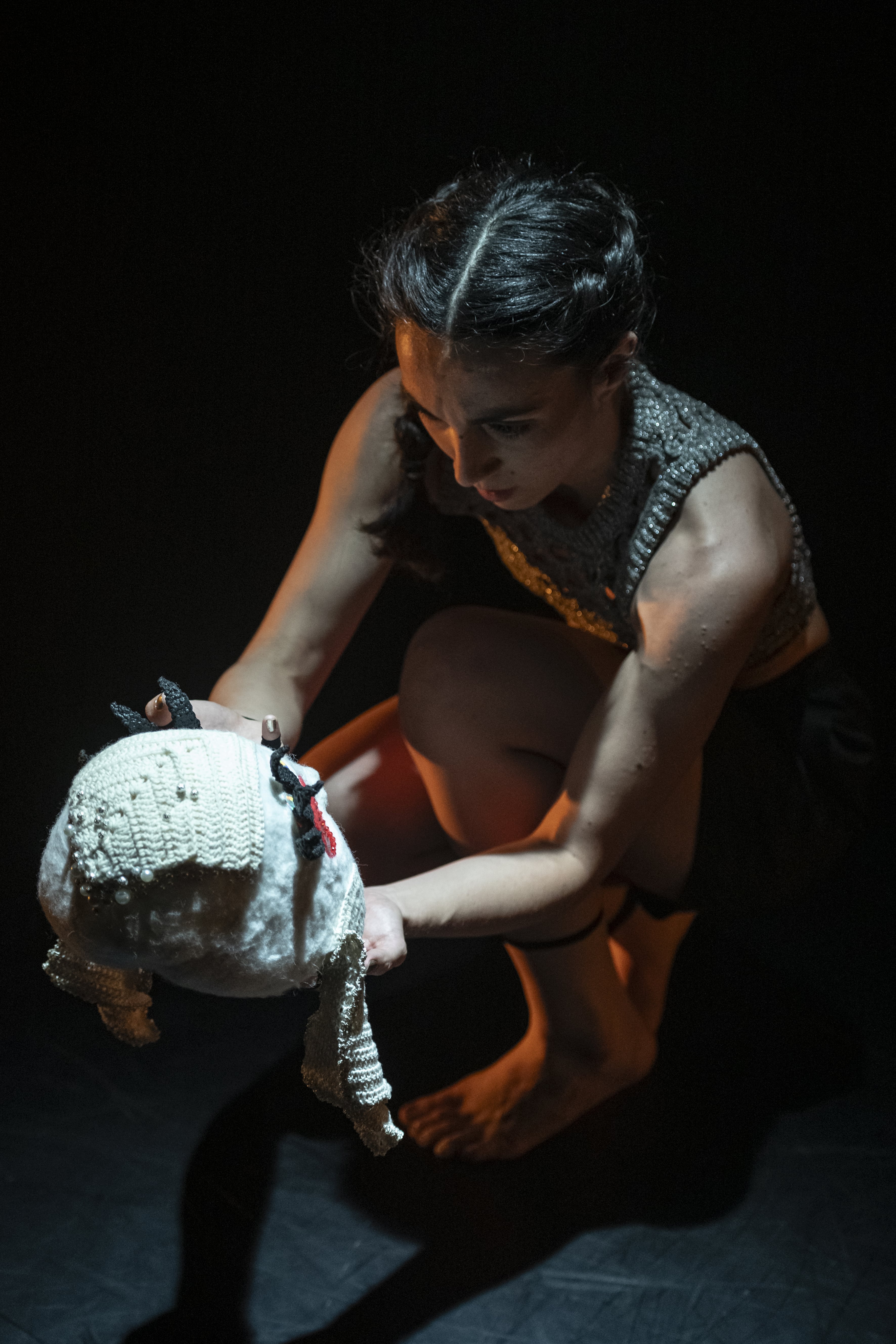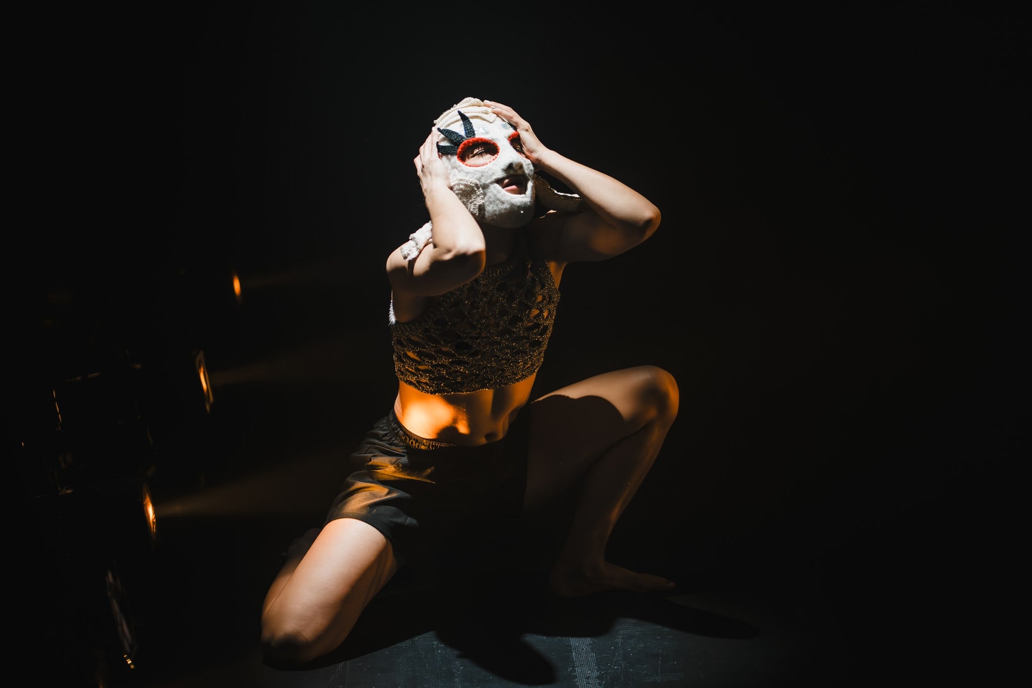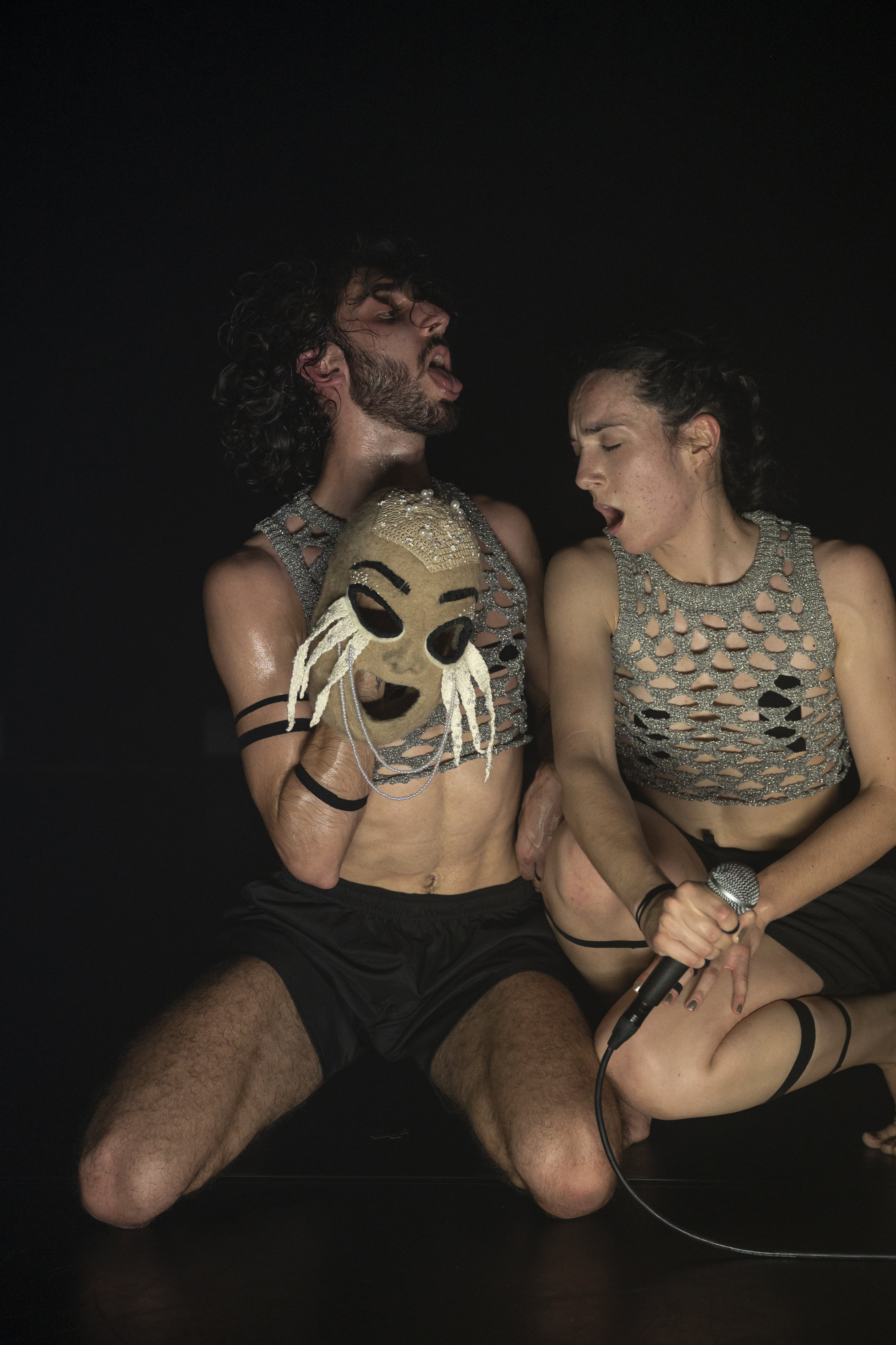 HIDE TO SEEK intends to think of the mask as a crystallization of an expression, state of mind or (identity) but also as a possibility of (dis)identification for the emergence of a distinct corporeality. In a tense and ritual game of hiding and seeking, the body redefines itself with each gesture, letting itself to be transformed by its successive repositioning. We seek an evident dialogue between impervious form and changeable form, between the singular and the collective, which allows the impression of the mask on the face and the invocation of otherness on the body.